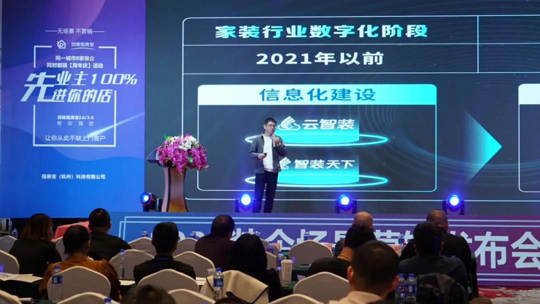 10 月 18 日,由指房宝举办的2021 年装企场景营销发布会在杭州举行,智装董事长秦漾东在峰会上发表演讲,主题为《家装数字化 —— 头部装企如何实现数字化转型》。